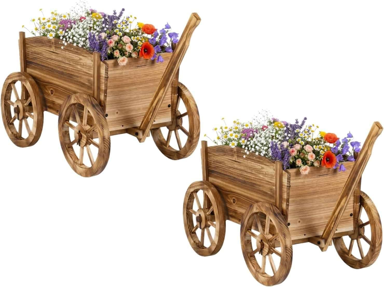 Giantex Rustic Wood Wagon Planter Set of 2