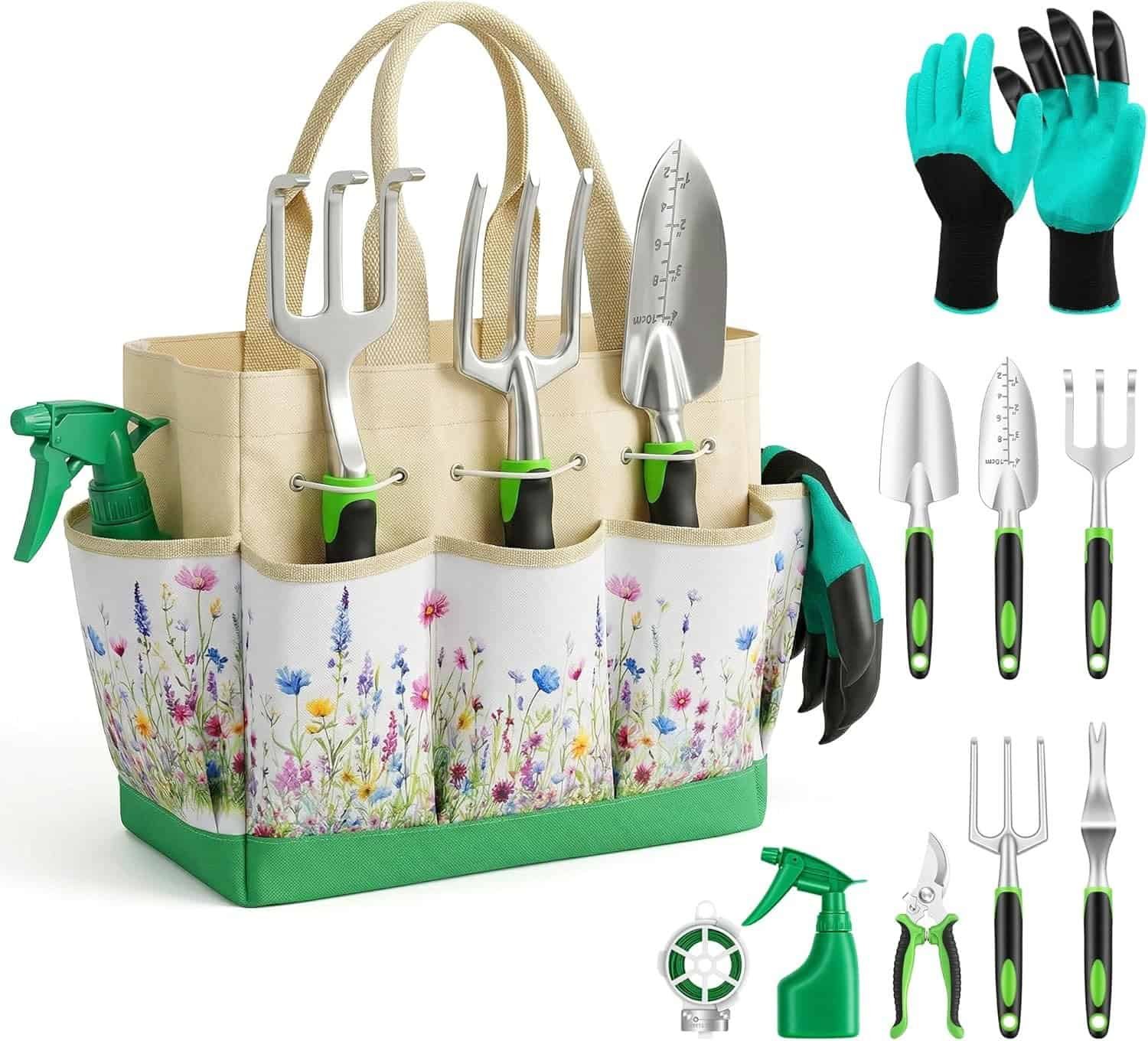 Rust-proof tools with a durable organizer handbag. A great gift set for gardeners of any level.
